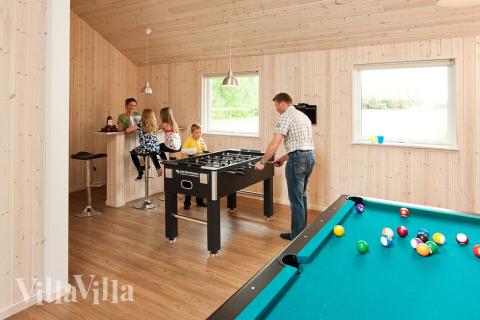 This fantastic Skanlux pool house is situated in beautiful surroundings near the beautiful beach and charming town of Ebeltoft. The house has its very own mini water park where you can swim, soak and relax for hours on end in its 20 m2 pool with water slide and counter-current system, as well as an inviting six-person whirlpool and large sauna. In the activity room, you can compete against friends and family at billiards, table tennis, darts, table football, and the... Read more