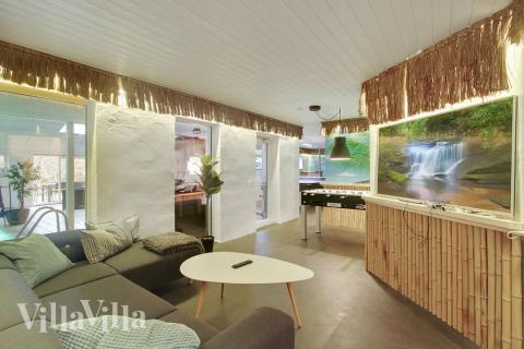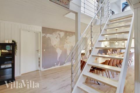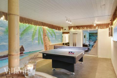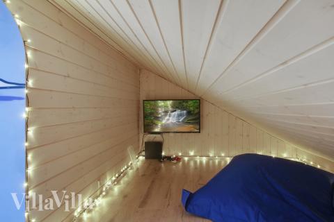 If you’re looking for a holiday spent outdoors then this house is a great choice. On its 2600 m2 plot you will find two large shelters (sleeping bags etc not provided) and a wood-fired outdoor hot tub with enough space for up to eight people at a time. Alternatively, if you prefer to keep busy under a sturdy roof then you will find plenty to do indoors. Simply head to the large activity room where you will find billiards, a PlayStation 4, table tennis, darts and table football. Play away to your heart’s content or enjoy a cold drink at the house bar with fridge which is also located in the activity room. There is also a cosy playroom for the youngest among you.