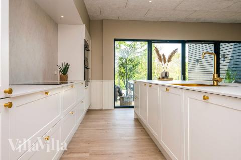 Inside, the house boasts lots of great functional spaces while the Nordic decor creates a warm and informal ambience. The living space will draw you together around the dining table for board games and long chats, while the kitchen is practically set up to accommodate many cooks at the same time.
