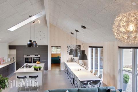 At the heart of the summer house is a large and bright living space with ample room for everyone to gather together over dinner. The well-appointed kitchen has ample space and everything you need to prepare food for the whole gang. Among other things, it has two cookers and two fridges.
