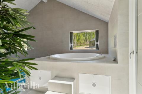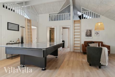 In the open-plan heart of the home, you will find a large and well-appointed kitchen, where you can whip up delicious dinners together. The long dining table simply invites you to gather and enjoy each other’s company, while the sofa area is perfect for kicking back after a busy day. For the more active among you, meanwhile, the house also has an activity room with billiards, table tennis, table football and darts where you can go head to head in different games. And after all that pulse-raising competition, you can enjoy a cold refreshment at the activity room bar – just remember to bring along your favourite drinks!