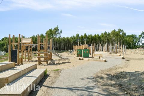 Outside, Fjellerup Feriecenter has a large, multi-purpose sports field and a wonderful playground with activities for children of all ages. There are seating areas for adults around the playground, so the whole family can enjoy playing and taking part in activities together in a safe environment. The multi-purpose sports field and the playground are free for guests to use and create a cosy gathering place for everyone.
