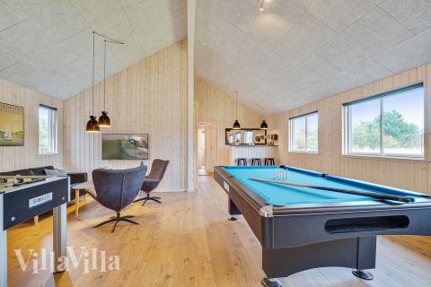 The activity room is brimming with games to play together. You will find everything from pool and table tennis to table football and darts. You can also relax in front of the TV or play a game on the PlayStation. The bar in the corner has its own fridge.