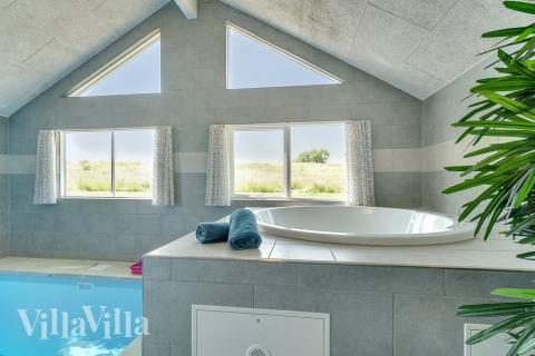 There is lots to do and enjoy in this summer house. Take a dip in the 20 m2 pool which has steps, a water slide and a counter-current system, or enjoy a moment in the whirlpool or sauna. You will find all this in house’s pool room.