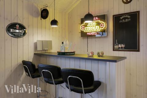 The summer house has a large activity room where you can compete and play to your heart’s content. You can play billiards, table tennis, darts, table football or have a go on the PlayStation 4. The activity room also has a home bar with fridge where players and spectators can enjoy a cold drink. At the heart of this summer house you will find a bright and inviting kitchen/living space where all in the house can gather.