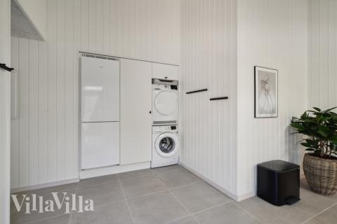 After a few games, a dip in the pool and a moment of wellness, you will no doubt have worked up quite an appetite. Meals can be prepared in the property's kitchen, which is located in the open-plan heart of the home. Here, the chefs of the group can whip up delicious meals, while the remaining guests relax in the sofas with a cold glass of wine from the wine fridge or play a game of cards at the long dining table.