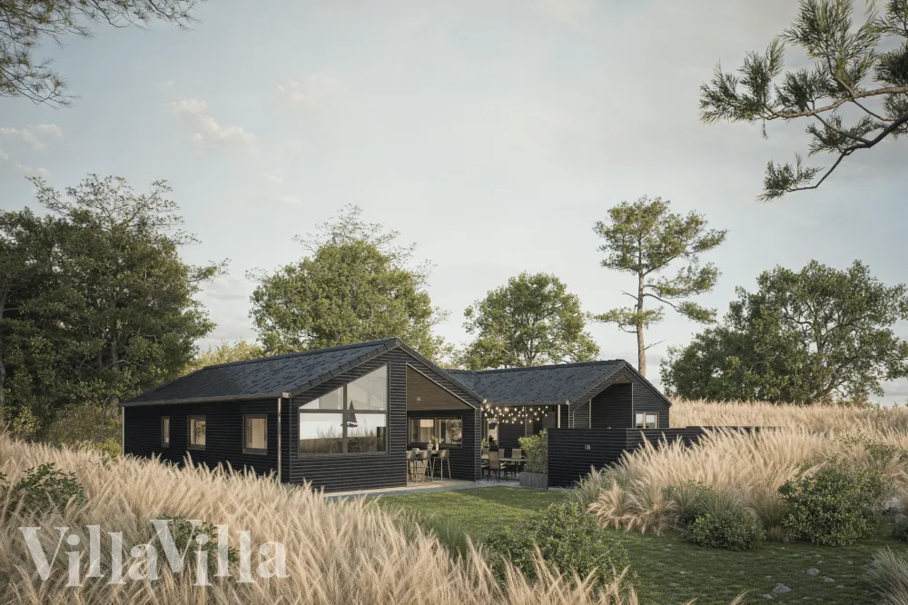 The inviting living area is the heart of the home. It combines a modern, open kitchen with a dining and sofa area in a single open-plan space, complete with a wood-burning stove spreading cosy vibes to all corners. The kitchen is well-equipped with two ovens for group cooking, while the long dining table invites you to come together for meals and chats.