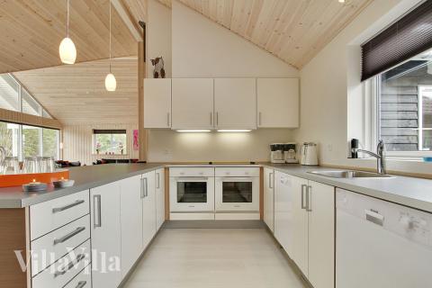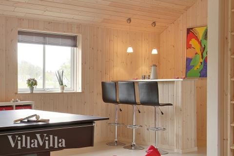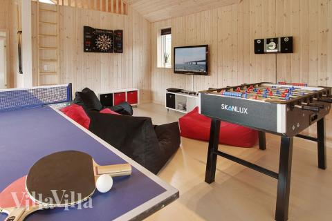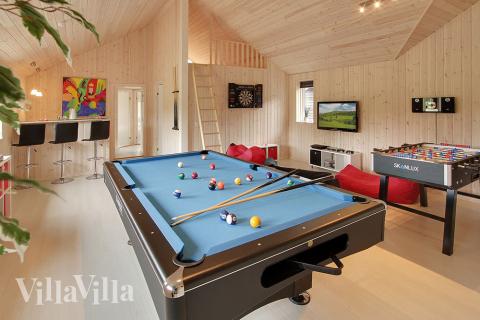 The house was built by Skanlux and has a great pool room with a 19 m2 pool with counter-current system, a whirlpool for 4–6 people and a sauna. If you want yet more activity, then this house has an activity room where you will find billiards/table tennis, table football, a PlayStation 3 and darts. There is also a cosy bar with a fridge where you can mix up some drinks to enjoy as you play.