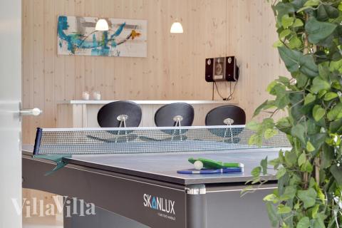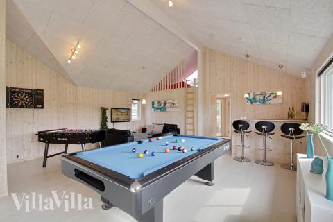 The house has a beautiful pool area with an 18 m2 pool with water slide, a large whirlpool with room for 4–6 people and a sauna. If you want yet more to do, the house is also equipped with billiards/table tennis, table football, a PlayStation 3 and darts.