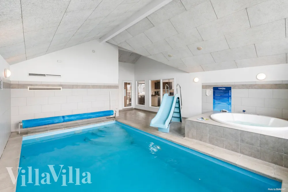 Welcome to this lovely Skanlux house, which is beautifully located by Skåstrup Stand and close to the charming town of Bogense. The house features a great wellness area where you will find both a whirlpool and sauna as well as an 18 m2 swimming pool with water slide, counter-current system and Roman steps. The house has a separate activity room with fun and entertainment in the form of billiards and table tennis, table football, darts and a PlayStation 4, meaning... Read more