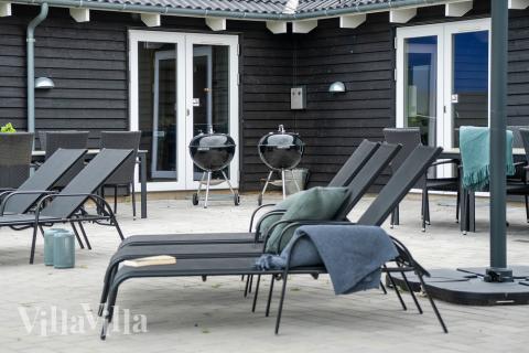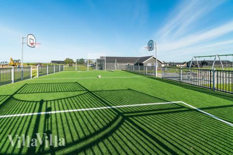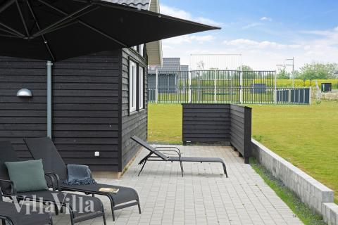 Outdoors you will have ample opportunity to get your heart rate up! This house is one of the first holiday homes in Denmark to boast a large multi-purpose court and playground which is situated between the two properties and thus shared with the neighbours. This fantastic area is built and designed by industry-leader HAGS, naturally with great consideration for safety. It is an area with something for everyone. From swing sets, a play castle with slides and a climbing frame to the large and versatile multi-purpose court. The court has an astroturf pitch and can be used for football, basketball, football tennis, volleyball and badminton.