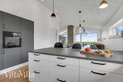 The holiday home can accommodate 9 people in 4 bedrooms and is bright and inviting, with a focus on cosiness and comfort. The central living area is bright and stylish with plenty of space for shared meals, board games and long conversations around the table. In the living room, the biofireplace creates a warm and atmospheric ambience that invites you to relax on cool evenings, while the view of the garden and the water completes the holiday feeling.