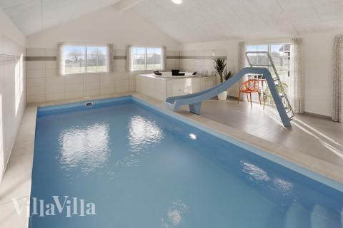 Another popular space in this home is the property’s very own mini water park. In there you will find a large swimming pool with water slide, counter-current system and Roman steps. The exquisite whirlpool and warming sauna both make for great places to relax and enjoy your holiday. Alternatively the whirlpool can be filled only slightly and used without bubbles as a baby pool for younger kids.