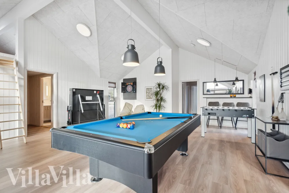 When lots of people get together on vacation, the right setting is key—and that's exactly what this big pool cottage offers. Here, the focus is on togetherness, experiences, and comfort, so both kids and adults can enjoy their vacation together without compromising on space or privacy. A true Sammenhus™, created for large families. • Activity room with table football and table tennis, among other things • Indoor pool with slide • Shared playground The large living room is the natural... Read more