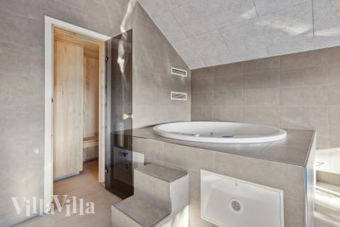 The house has five bedrooms and a loft which is a particularly popular option for kids. The house can sleep up to 12 people in total. There are two bathrooms in total across this VillaVilla house.