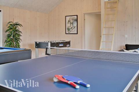 The activity room boasts is brimming with fun and games you can enjoy as a group. Here you will find billiards, table tennis, darts, table football and a cosy sofa corner with a PlayStation 4. There is also a nice home bar with its own fridge where you can serve up some drinks for the players.