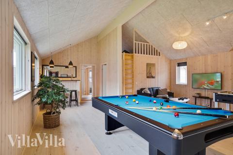 The exquisite holiday home is well equipped with a versatile activity room for guests of all ages. Here you can challenge the other guests to a game of billiards, table tennis or table football while younger guests have a go on the holiday home’s very own PlayStation 4. Plus you can also play a game of darts or relax at the cosy bar which comes complete with its own fridge.