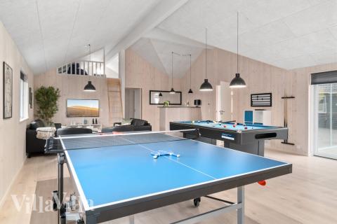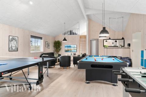 Besides quality moments together in the house kitchen, guests can also enjoy hours of fun in the holiday house’s activity room. Here you can go head to head in table tennis, billiards, table football or darts. Should all that energy have you working up a sweat, you can take a break at the cosy bar which also makes a nice spot for spectators.