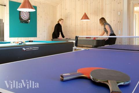 The house’s large wellness area, which features a 22 m2 pool with water slide, whirlpool and sauna, will entice both old and young alike to enjoy hours of fun and play. In addition to all the fun activities in the wellness area, the house also has a well-equipped activity room where you can challenge friends and family to a game of billiards, table football, air hockey, table tennis or darts.
