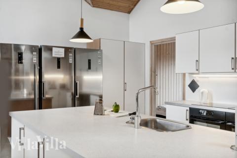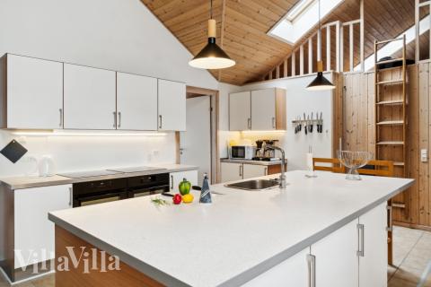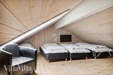 The house is extremely spacious and well dimensioned, and it is built up around three separate sleeping quarters, each with their own bathroom. There is also a large loft with ample space for a couple of overnighting guests.