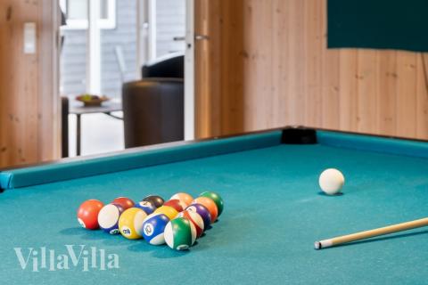 There are two activity rooms in the house – one with table tennis, darts, table football, a PlayStation 3 and air hockey. The second is the house’s den which features a billiards table, darts and a bar with fridge.