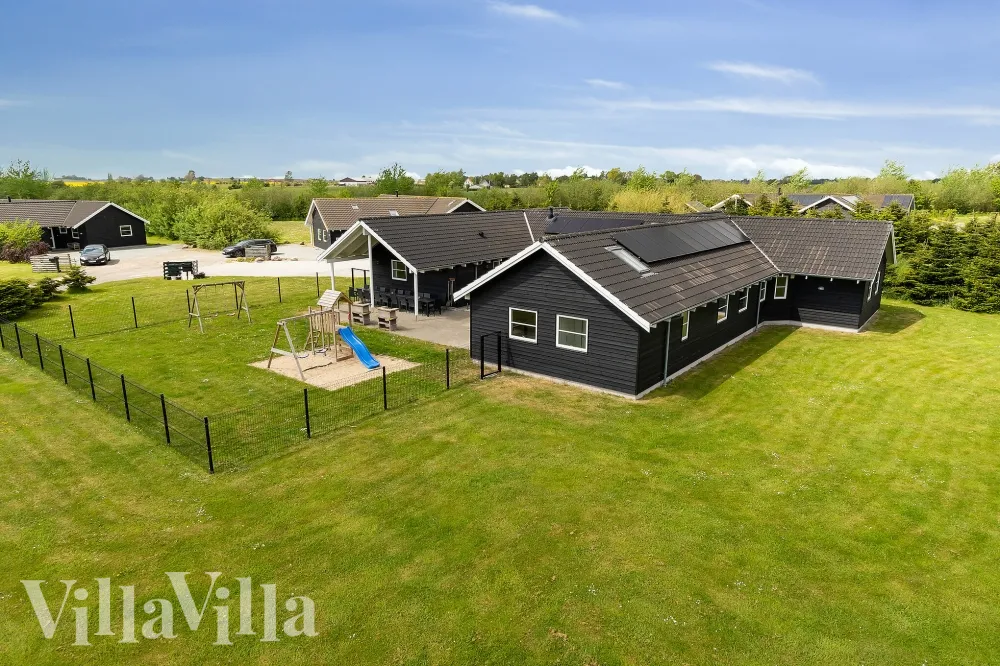 There is a large terrace (partially covered) where you can enjoy the Danish summer in good-quality garden furniture. he large grounds which surround the house feature swings and a sandbox for younger guests to enjoy. The plot is partially enclosed by a fence with a height of 150 cm, see photos.