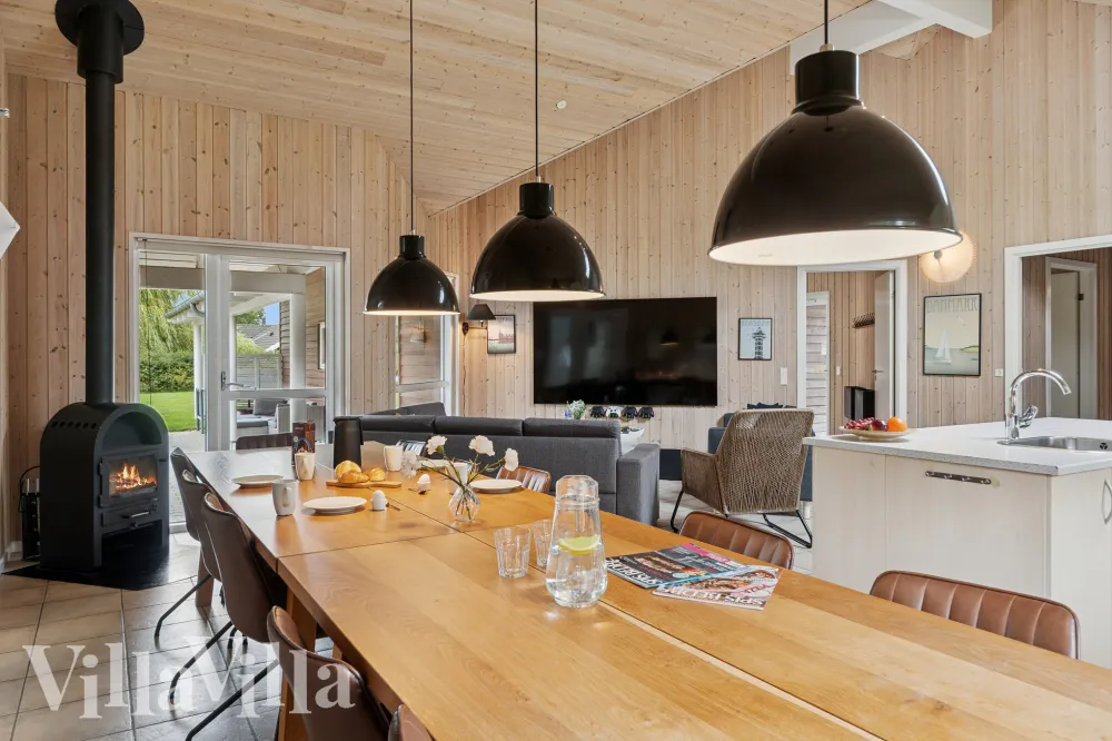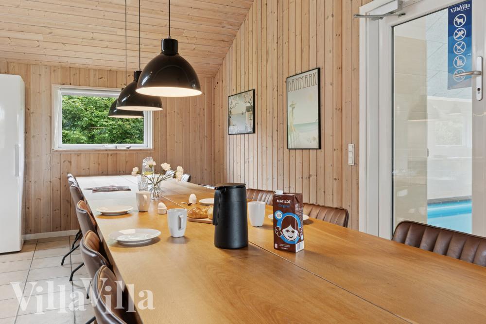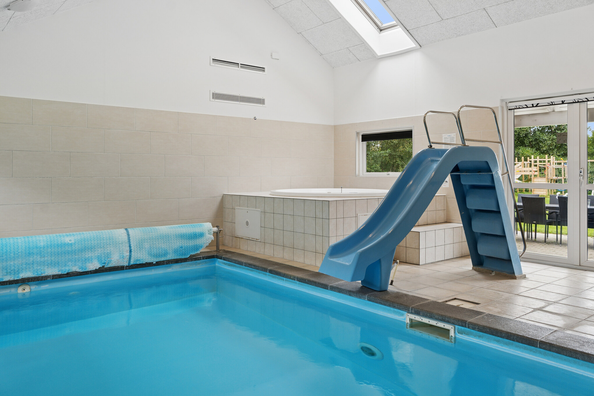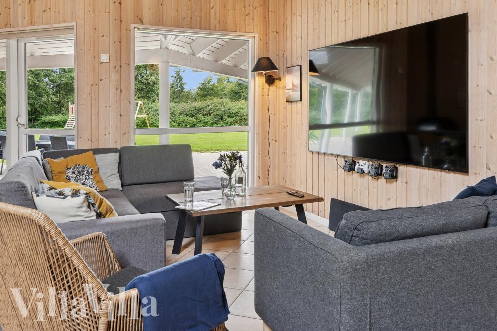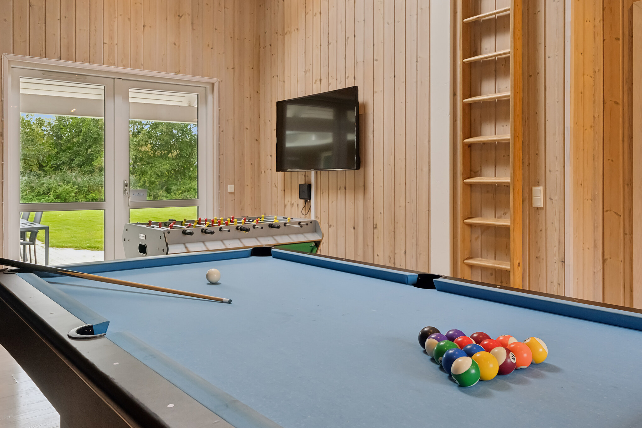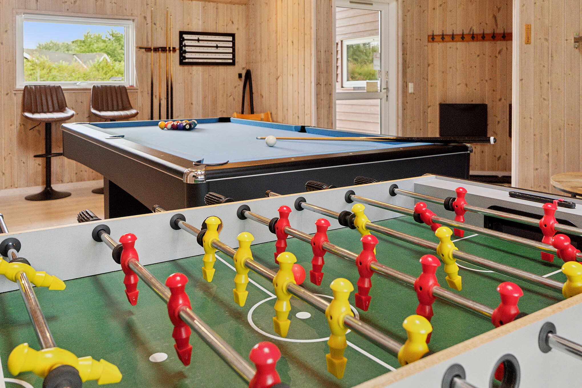 Indoors you will also find everything you need for a lovely vacation. The house offers both comfort and cosiness in its spacious kitchen/dining room, its very own pool area and its exciting activity room. The house's beautiful pool area contains a pool with water slide, an inviting six-person whirlpool and a large sauna where you can relax and enjoy that great vacation feeling. The activity room is also set up for hours of fun. There will be no excuse for sitting still when you have the option to compete attable football, air hockey, table tennis, billiards and darts. There is also an Xbox Series X.
