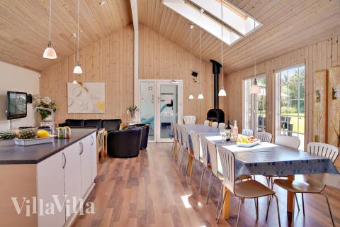 The house has its very own mini water park with a 20 m2 pool with water slide, whirlpool with space for 4–6 people and a sauna. The summer house also has an exciting activity room where all the family can enjoy a game of billiards, table tennis, table football and darts. Or if that is not enough to quench your thirst for competition, then you can challenge each other to a game on the PlayStation 2