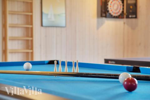 The house also has a game and activity room which is separate from the main living space. It has billiards, table tennis, darts, table football and a cosy sofa corner with a PlayStation 4. Unleash your competitive side and give it your all or simply chill out and enjoy the corner bar while you cheer on the players. The activity room also has a cosy play loft which is equipped with beanbag chairs and a TV.
