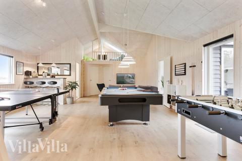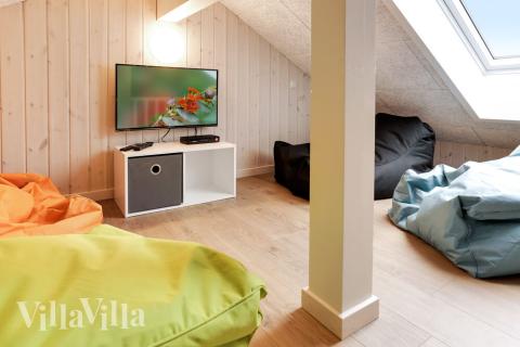 This holiday home also has its own activity room where you will find games for kids and playful souls of all ages. You can play a game of billiards and table tennis, hold a table football championship or challenge each other to a round of darts. From the sofa in the corner you can enjoy a good movie or have a go on the PlayStation 4. And if all the action leaves you with a thirst, you can grab a cold drink from the home bar with its very own fridge.