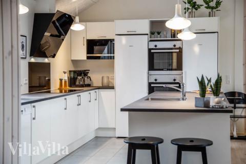 The house has a stylishly decorated kitchen/living space with high ceilings and ample space for everyone to gather around the long dining table. The large kitchen has a kitchen island, two sinks, two dishwashers, two ovens and plenty of fridge space. Also in this space is a cosy wood-burning stove which you are very welcome to use on your stay.