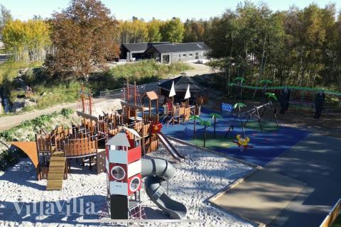 The exquisite terrace invites you to enjoy long summer evenings eating food from the barbecue and enjoying great vibes around the dining table, all while the kids have fun on the swings in the garden.