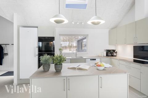 The large living space is the home's natural gathering point. Here you can come together around the long dining table for meals, games and quality together time, while the sofa area and the wood-burning stove create a cosy, laid-back vibe. The XL kitchen is equipped with two ovens and two dishwashers – perfect for cooking together on a large scale.