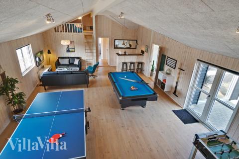 The multi-purpose space offers plenty to do for all ages. With table tennis table, table football, darts and billiards all on offer, there is sure to be something for everyone. Here you will also find your very own private bar with fridge and a sofa corner with TV and PlayStation 4.