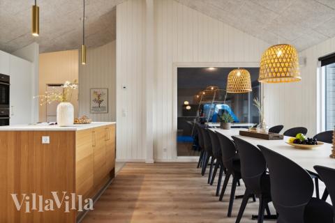 This luxury holiday home from Skanlux is full of activities that will appeal to both active water lovers and leisurely bonvivants. Thanks to its indoor heated pool with water slide, guests to this house can enjoy an invigorating swim no matter the time of year. Extend the outdoor season, even on chilly winter days, on the cosy wooden terrace, in the wellness area with outdoor spa, outdoor shower and outdoor sauna. Here you can truly relax and enjoy well-being under the stars. On warm summer evenings, you can sit down in the lounge furniture for a barbecue, while the children can play in the garden on the trampoline or swings.