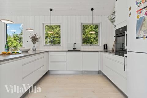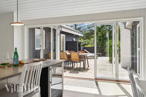 Or if you feel more like making the most of the fresh sea air, you can step out onto the inviting terrace, which has both open and covered sections, so you can take shelter from the wind and enjoy the sun. Fire up the barbecue and cook delicious meals while the rest of the family kicks back and chills out in the comfy garden furniture. For the ultimate in relaxation, you will also find an outdoor wilderness bath where you can let the warmth embrace you after a long day of walking on the beach and getting active in the local area. The look-out point in the garden is a great place to enjoy gorgeous views of the sea while you sip on a cup of coffee.
