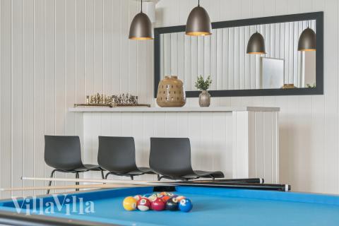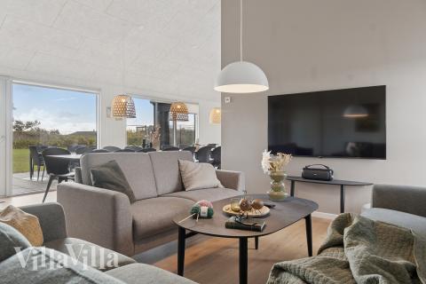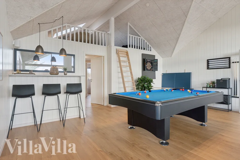 This modern 18-person holiday home with swimming pool is located just 250 metres from the North Sea by Nr. Lyngby - close to Løkken and provides a gorgeous setting for holidays with your family or friends. Enjoy the pool, whirlpool and sauna, the cosy common room and plenty of activities – both indoors and out – in a house that’s simply made for spending quality time together, all year round.