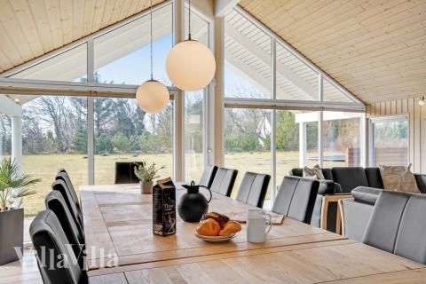 This beautiful pool house, built by Skanlux, is located close to Nr. Lyngby's wonderful sandy beach and its beautiful nature. Fans of the water can splash and swim for hours on end in the 15 m2 pool with water slide.