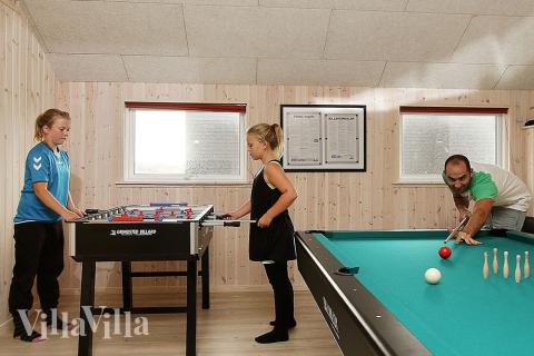 The holiday home is full of activities – here you will find a lovely pool area with a 15 m2 swimming pool with water slide and built-in counter-current system. The house’s very own mini water park also features a large whirlpool, a bathroom with underfloor heating and a sauna. Besides the many hours you can spend in the pool, the house also has much else to offer. There is a fully equipped activity room with billiards/table tennis, table football, a PlayStation 4 PRO and darts.