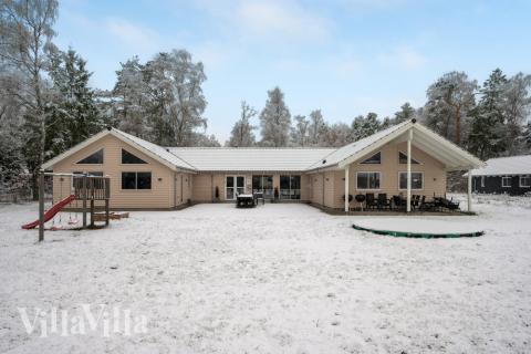 This large pool house with space for up to 24 people is brimming with things to do and nicely located in Asserbo, which offers both woodland and beach between the towns of Tisvildeleje and Liseleje. There is plenty of space to gather with family and friends in this house which has a large and central open-plan living space combining kitchen, dining area, wood-burning stove and a cosy sofa arrangement. The spacious kitchen is equipped with two dishwashers, fridges, sinks, ovens... Read more