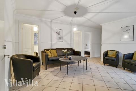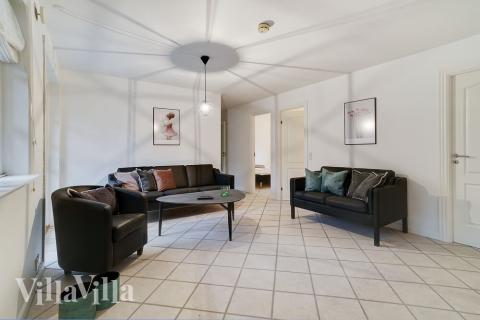 The house has eleven bedrooms (four twin bedrooms and seven double bedrooms) which are divided between two wings each with five bedrooms and one bathroom with whirlpool. The last bedroom is adjacent to a different bathroom and the main living space. In addition to the corner sofa in the activity room, there is also a cosy sofa nook with TV in each wing of the house.