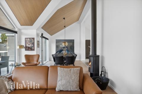 All while the wood-burning stove spreads warmth and cosiness throughout the dining area and the living area. In the living area, you can kick back in front of the TV and enjoy views of the garden through the large windows, which let natural light inside.