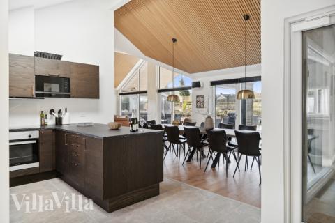 The large and bright kitchen/living area is the natural gathering spot of the property with a well-appointed kitchen where you can cook for all the gang. There is plenty of space around the dining table for shared meals or even a board game night as you relax and unwind.