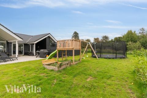 Outdoors, you can barbecue and relax in comfy garden furniture on the house’s terrace. The garden has a swing and sandbox for younger guests to enjoy, and you will also find an in-ground trampoline.