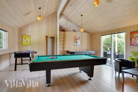 This beautiful and well-appointed Skanlux pool house is situated close to the wide sandy beach and charming town of Tisvildeleje. The house has its very own mini water park with 18 m2 pool and water slide where water babies from all walks of life can swim and soak for hours. After your swim, you can then relax with a session in the house’s large whirlpool and sauna. The whole family can compete for glory or dishes duty at games such... Read more