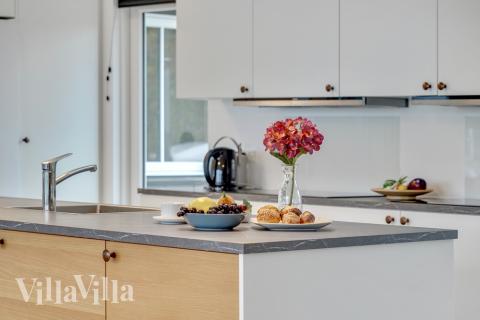 If the weather outside lets you down, you can gather instead in the large and bright kitchen/living space. There is also plenty of space for you to cook together. The house has an XL kitchen with two dishwashers, ovens, hobs and fridges.