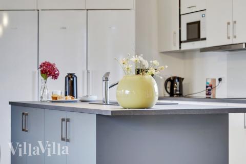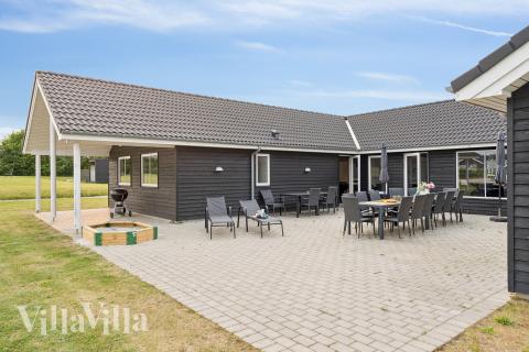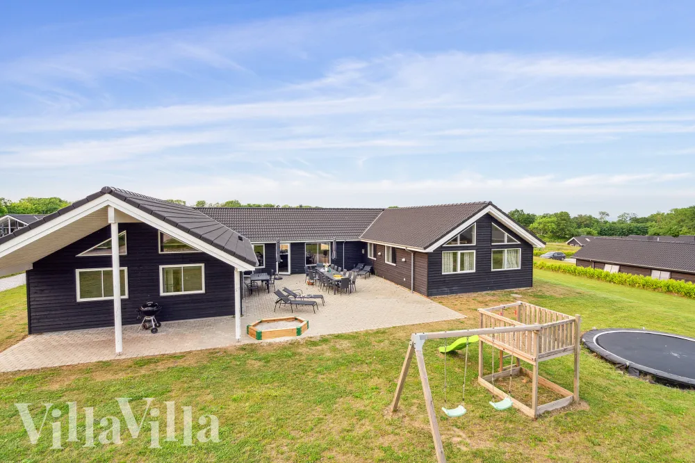 Outdoors, there is plenty of space for barbecuing on the house's large tiled terrace. The terrace measures 120 sqm and 20 sqm is covered. It is the perfect place to kick back with a good book, even when the summer rain is spitting down from the heavens. If the kids need something to do while the food is cooking on the barbecue, simply send them in the direction of the garden play area. There they will find swings, a trampoline and a climbing tower.