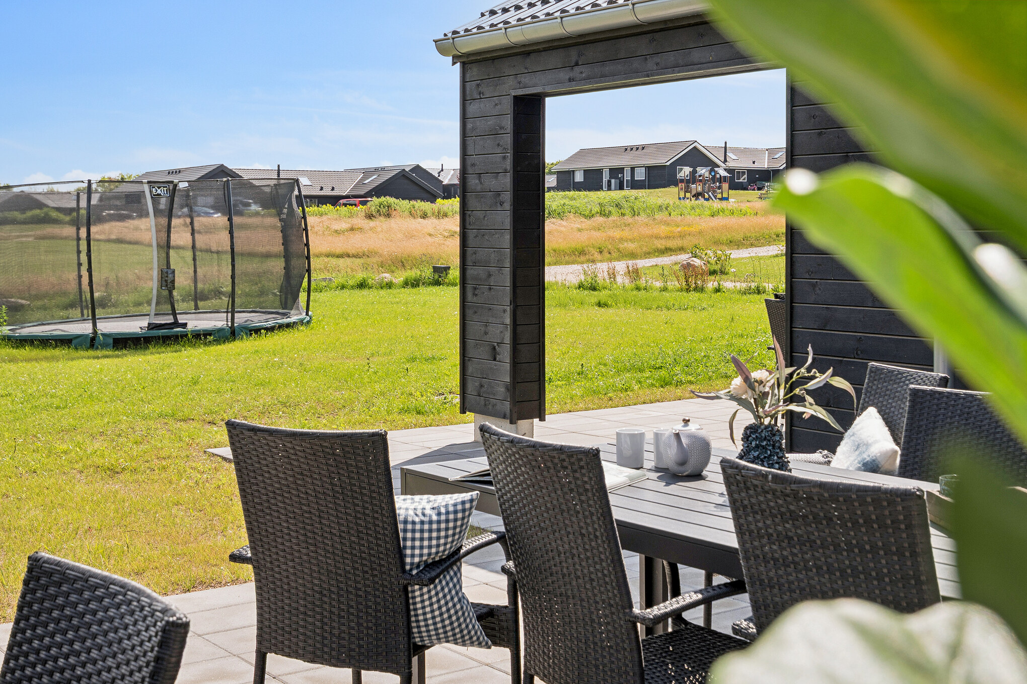 All holiday homes in Mommark have access to a common outdoor play area and multi-purpose court. Here both kids and adults alike can spend their days playing on the large pirate ship, swinging on the swings, sliding down the slide or climbing on the climbing frame. The multi-purpose grass court can also be used for football, basketball, football tennis, volleyball and badminton. In addition, the area also has tables and benches by the play area, where adults can sit and enjoy the relaxing atmosphere.
