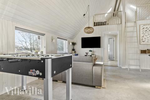 If you want to vacation in a holiday home set in the magnificent nature of Rømø, then this thatched house by Skanlux will be high on your wish list. Those who love to swim and play in the water will love this unique holiday experience. The summer house has a wonderful pool area with a water slide, a spacious integrated whirlpool and an inviting sauna. The house is roomy and well dimensioned with three separate sleeping quarters which each contain... Read more