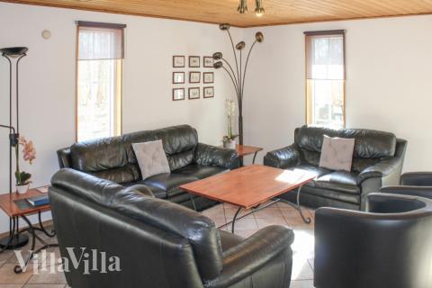 The house has its own water park where you can paddle and swim in its 30 m2 pool and kid’s pool. You can also pamper yourself by using the house's large whirlpool and warm yourself up in the sauna. After your swim, you can challenge each other to a round on the PlayStation 2 or to a game of table football.